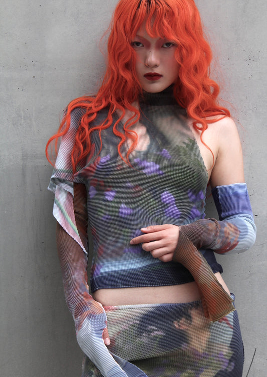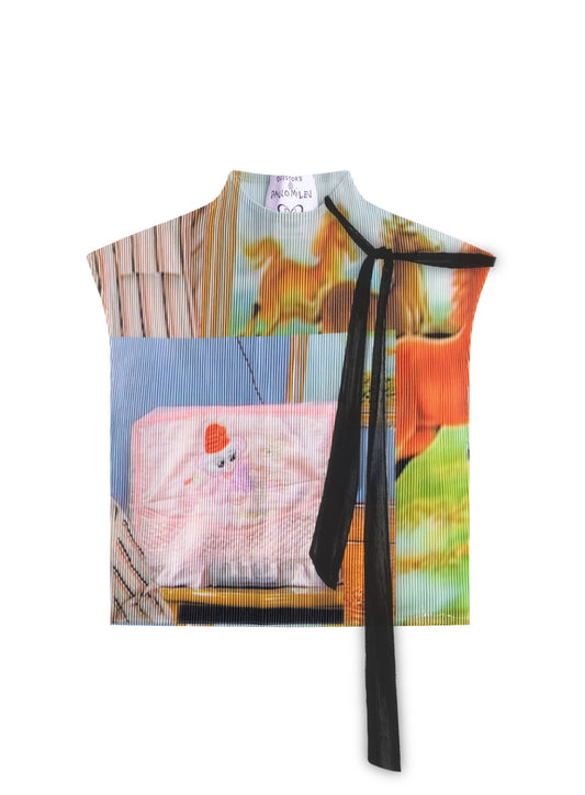 Outstore - Elastic Printed Pleat Top (Vintage Tray)