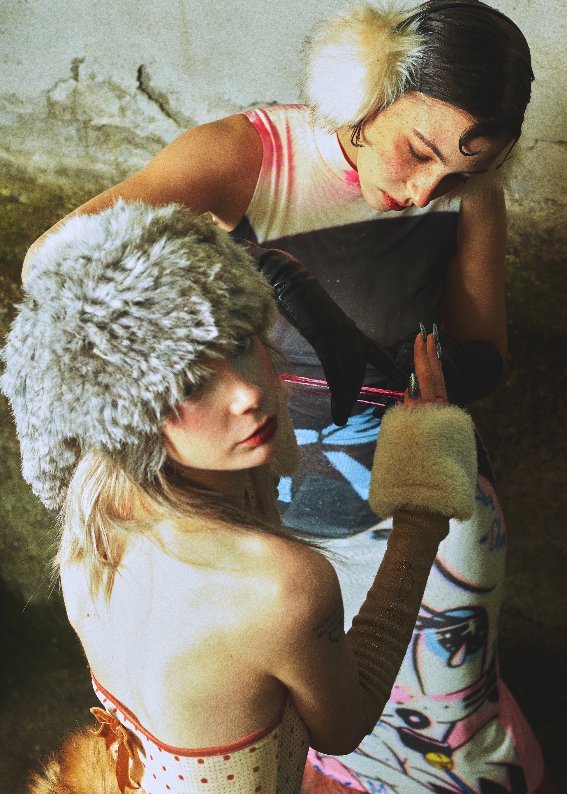 Slix and Dimano co-founded the brand BALLBOTGUM, showcasing their enthusiasm for subcultural waves and low-brow art, tinged with American retro vibes. Whether embracing retro or avant-garde styles, the girls of their brand, Evil Dog Bunny and Little Mimi, embody myriad personas akin to a sweet thunderbolt—flickering from the dawn of time to its very end.