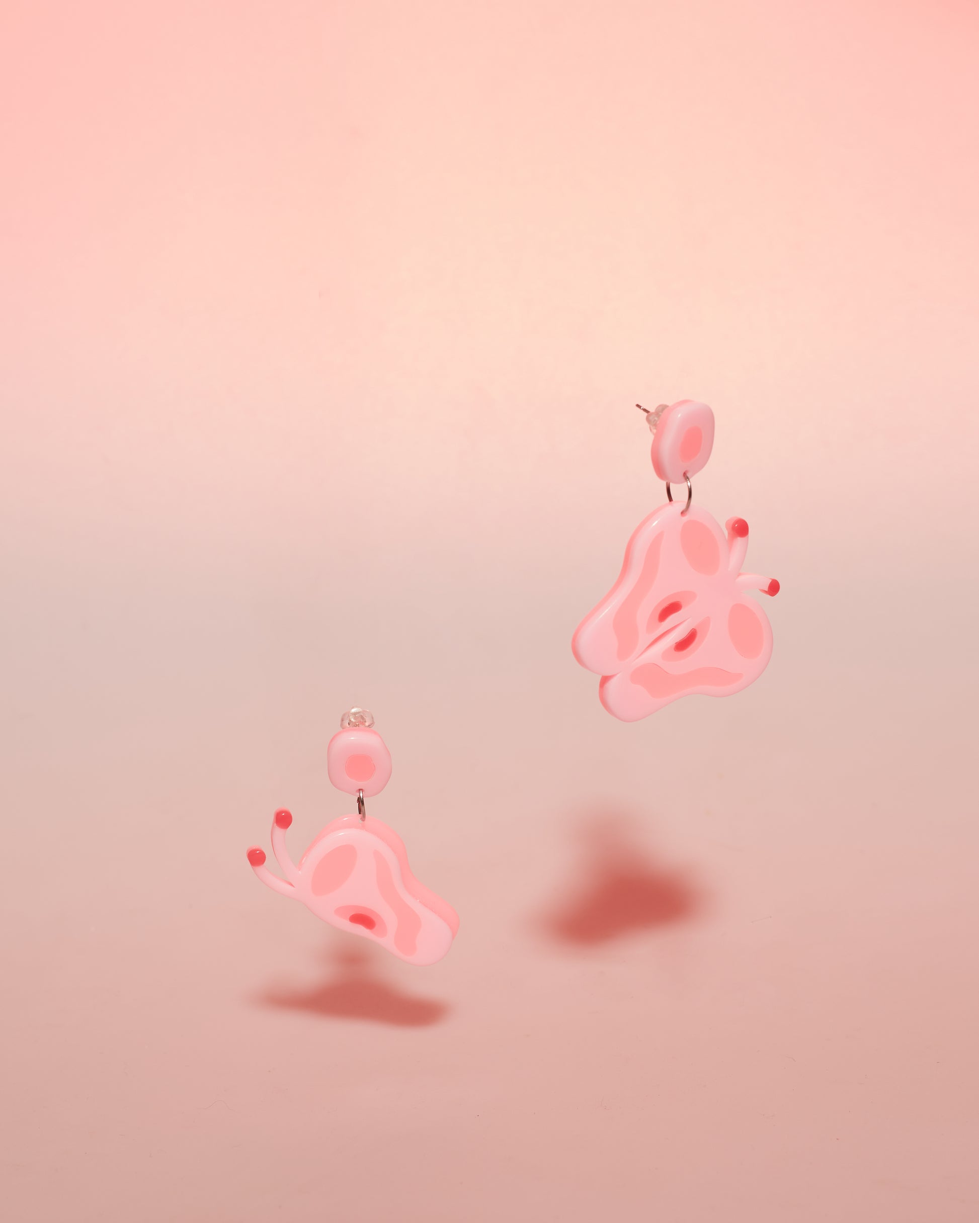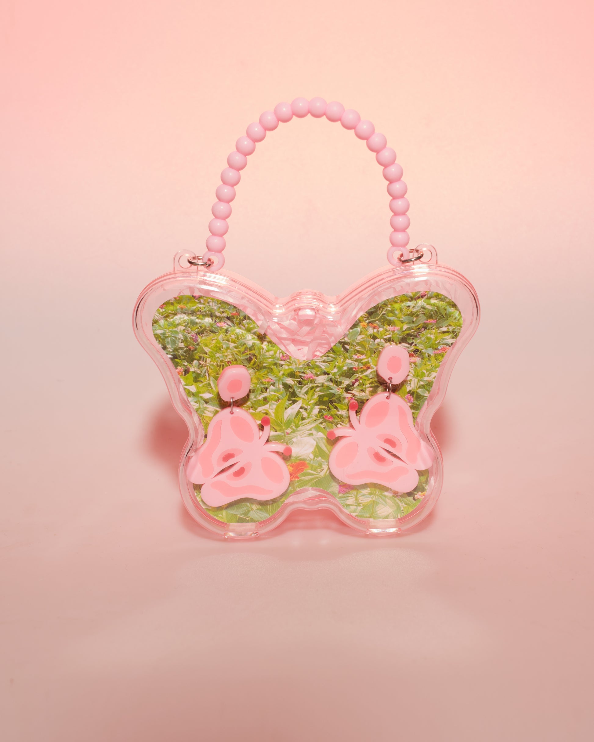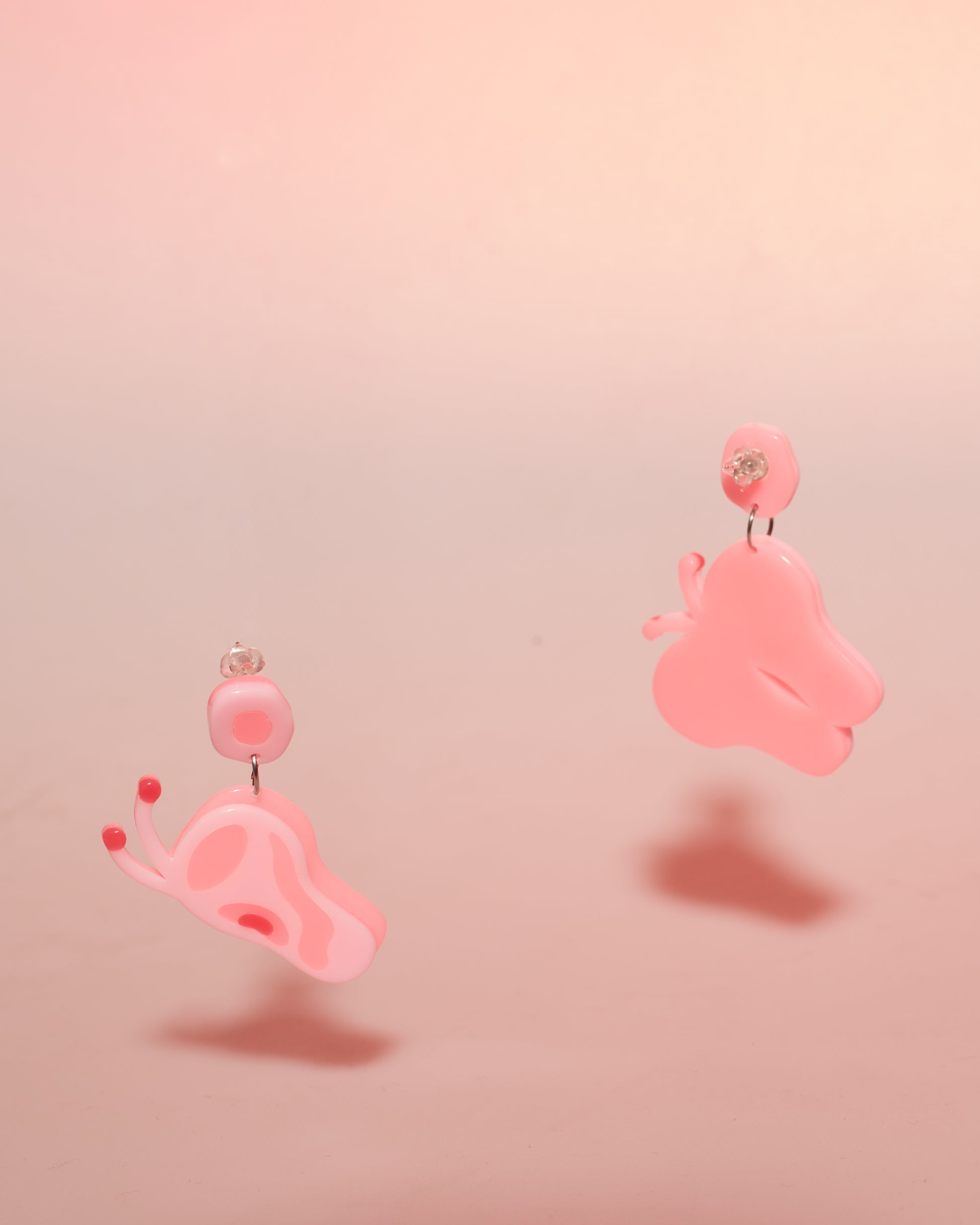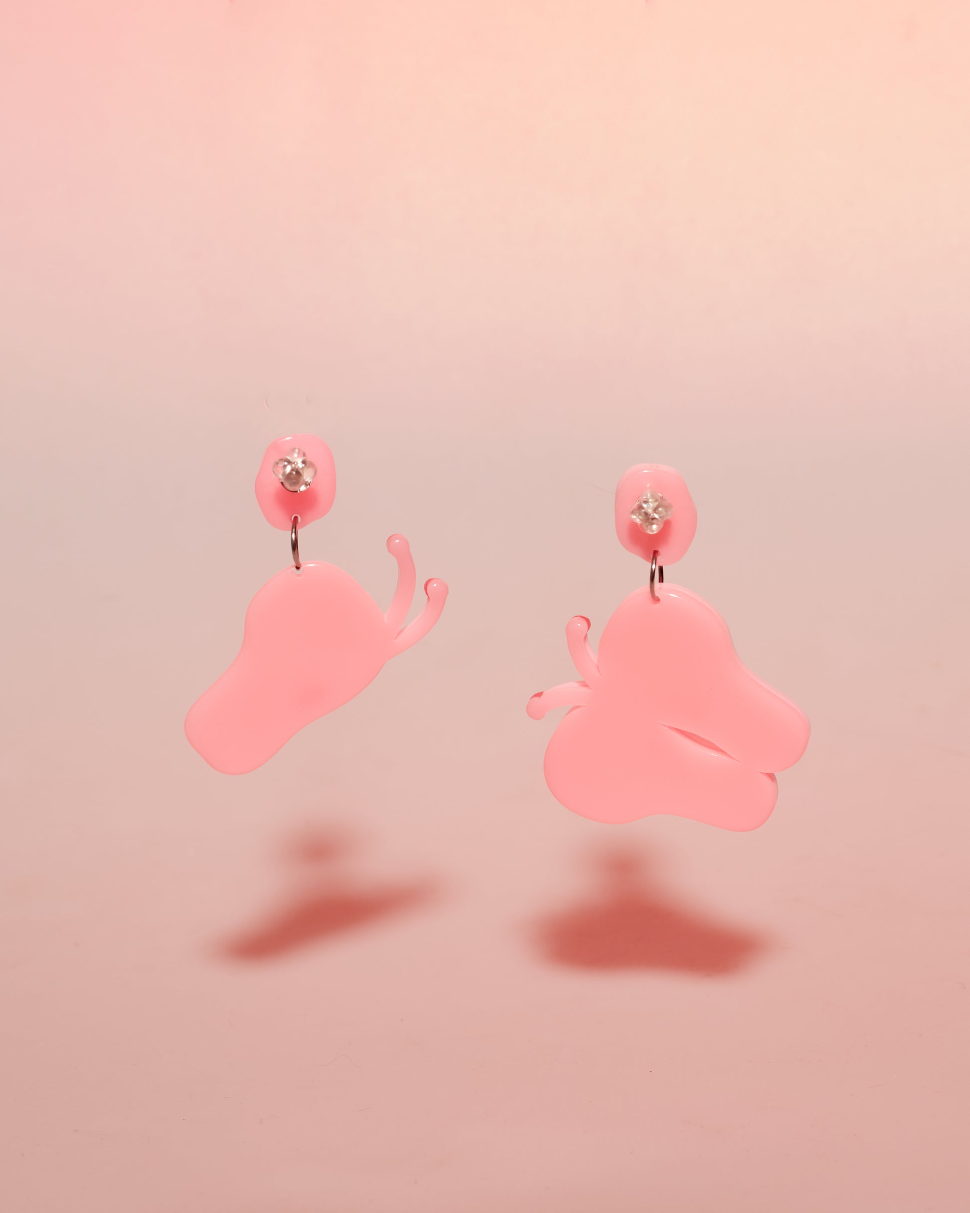 Ear-butterfly earrings are crafted with precision using acrylic cutting technology. Our artist draws inspiration from the elegance of the human ear, likening it to a butterfly that rests on the earlobe, hoping it can bring you to soft dreams.