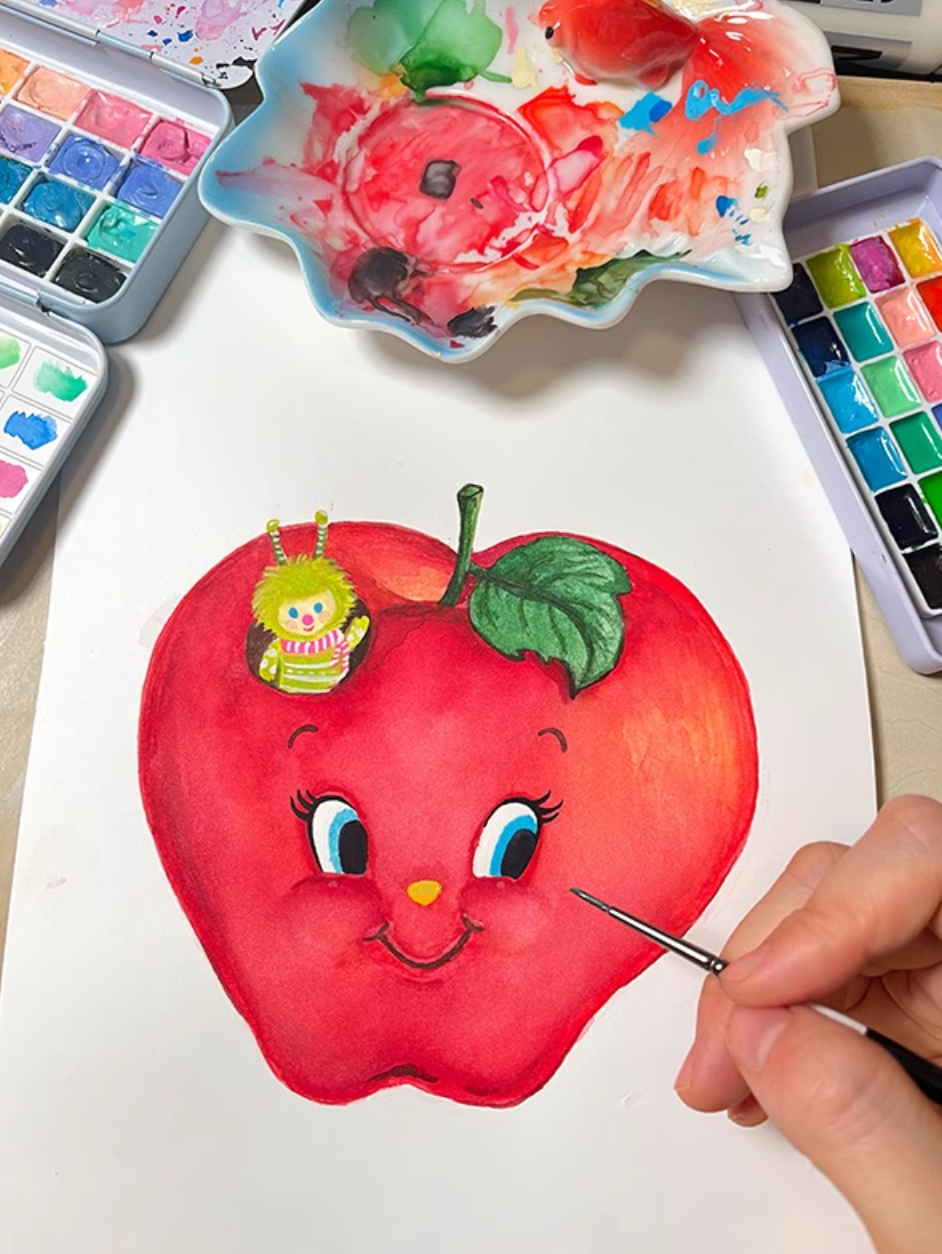 Embrace the charm of hand-painted art with our Apple Watercolor Illustration Cute Black T-Shirt. Featuring original watercolor artwork reproduced with high-fidelity digital printing, this t-shirt offers vibrant, long-lasting colors and a unique design.