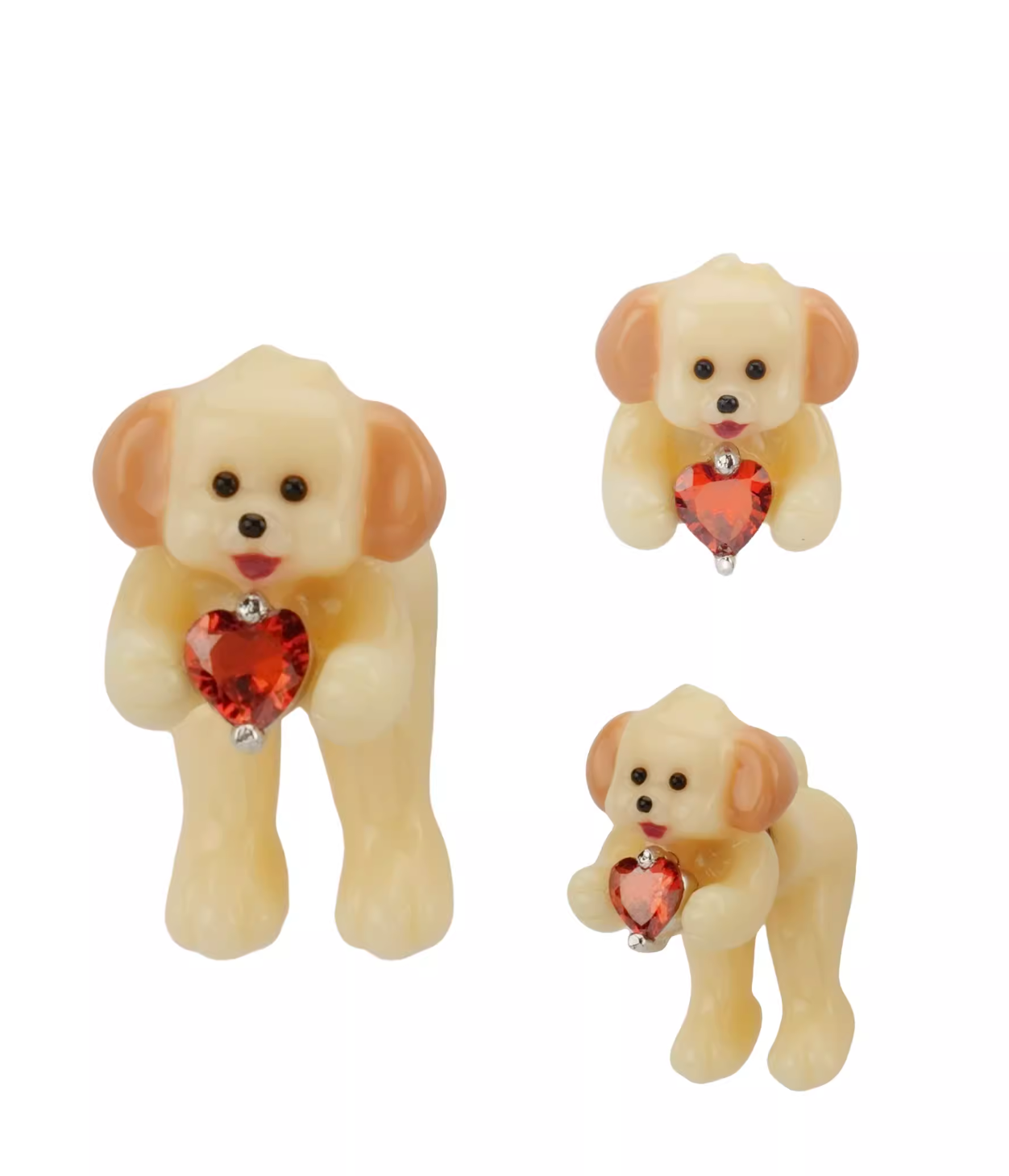 Our earrings are thoughtfully designed to honor these cherished memories. The Heartfelt Companions feature separate, intricate designs of a little yellow dog and a little white cat, each holding a heart and resting gently on your ear—a special and unique way to keep their spirit close.