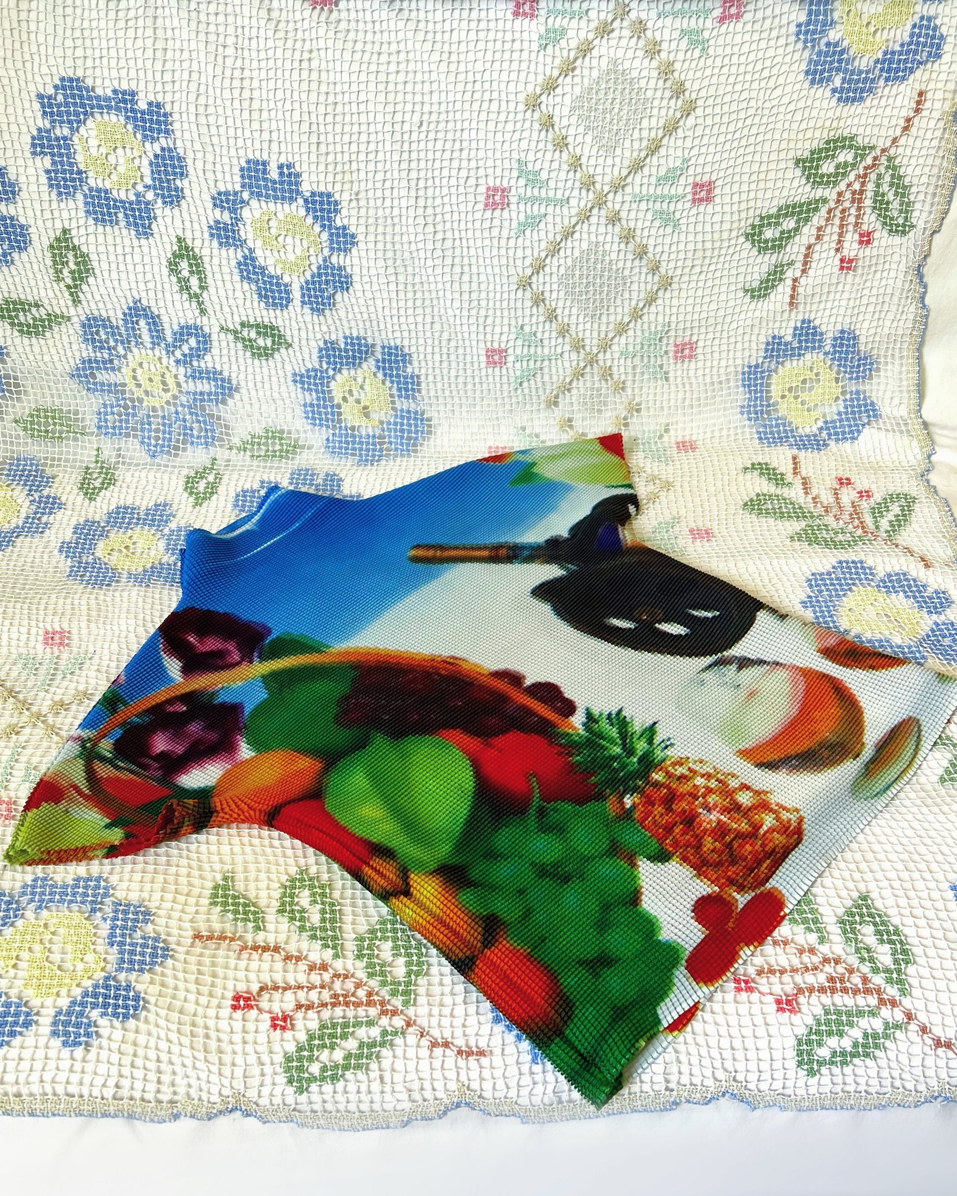 OutStore brings you a unique collection of pleated clothes adorned with prints inspired by 90s posters and everyday life imagery, sourced from artists' archives.