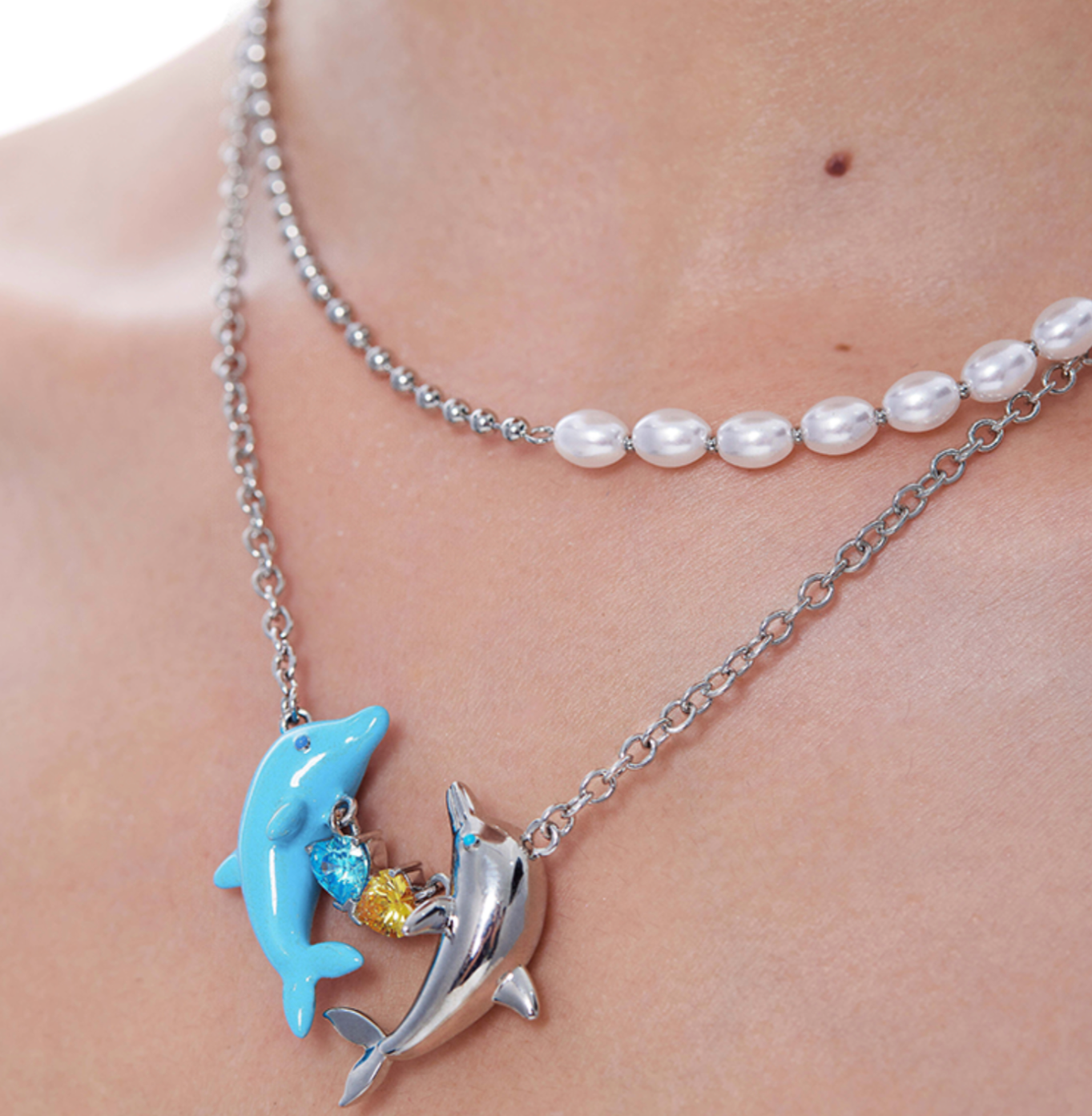 Gelelua - Dolphin Heart Hug Double Layer Necklace (My Virtual Toys)