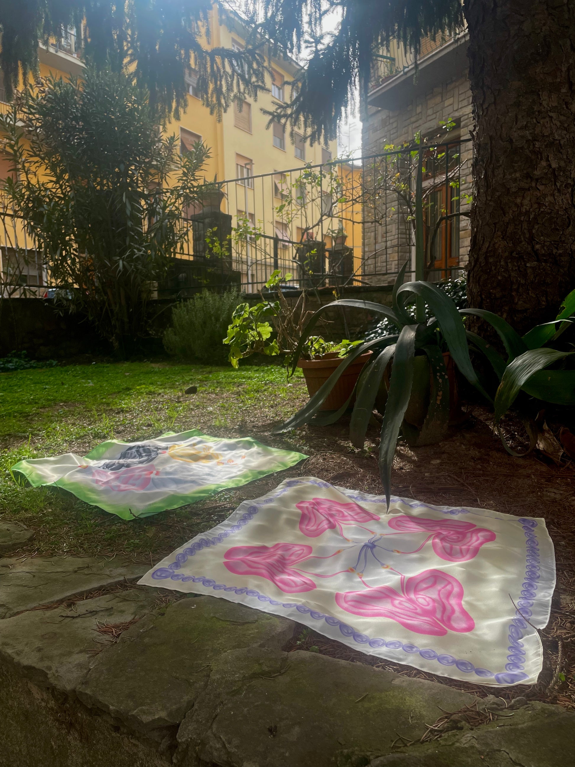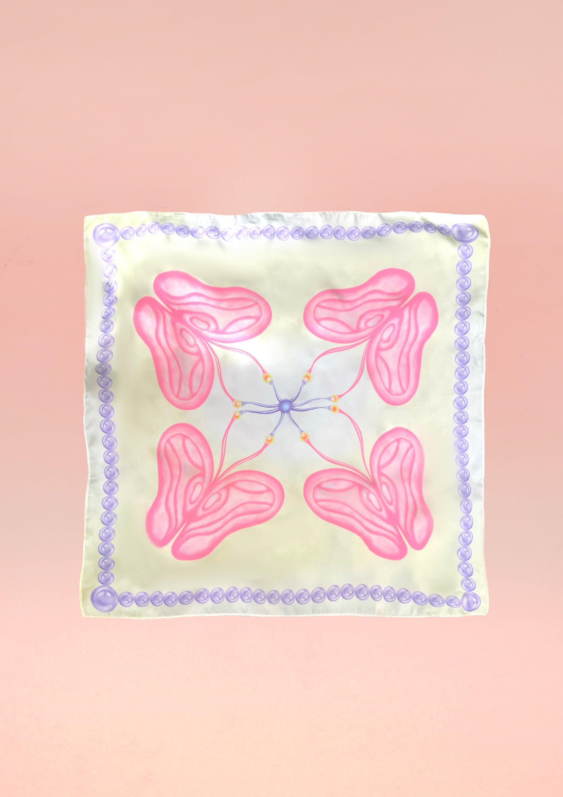 Ear-butterfly scarf, available in two unique designs, "Touch" and "Connection". High-quality digital printing ensures that the colors and details of the design pop, creating a beautiful and eye-catching accessory based on our artist's original illustrations. Order now and experience the magic of our Butterfly Ear Scarf for yourself.