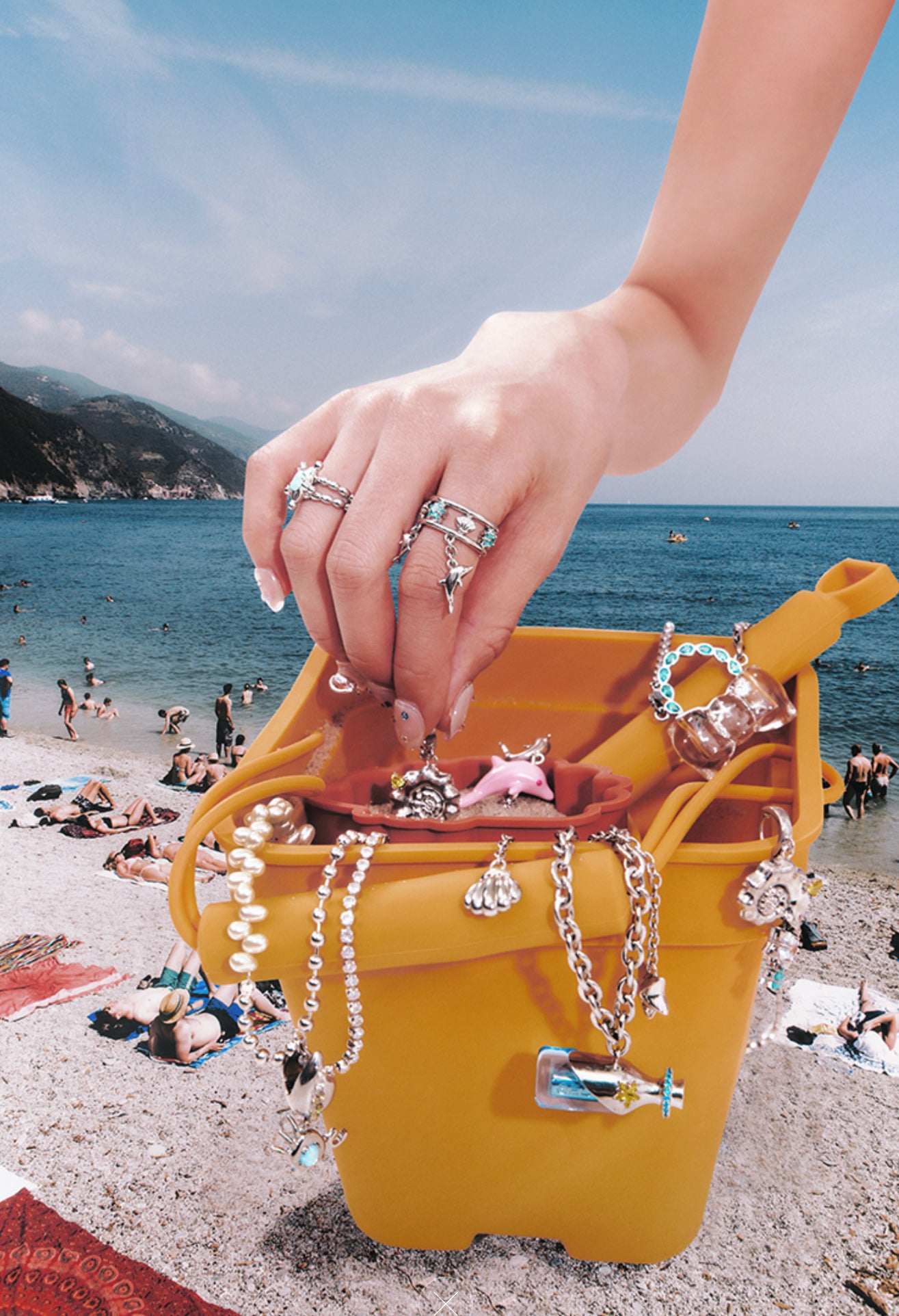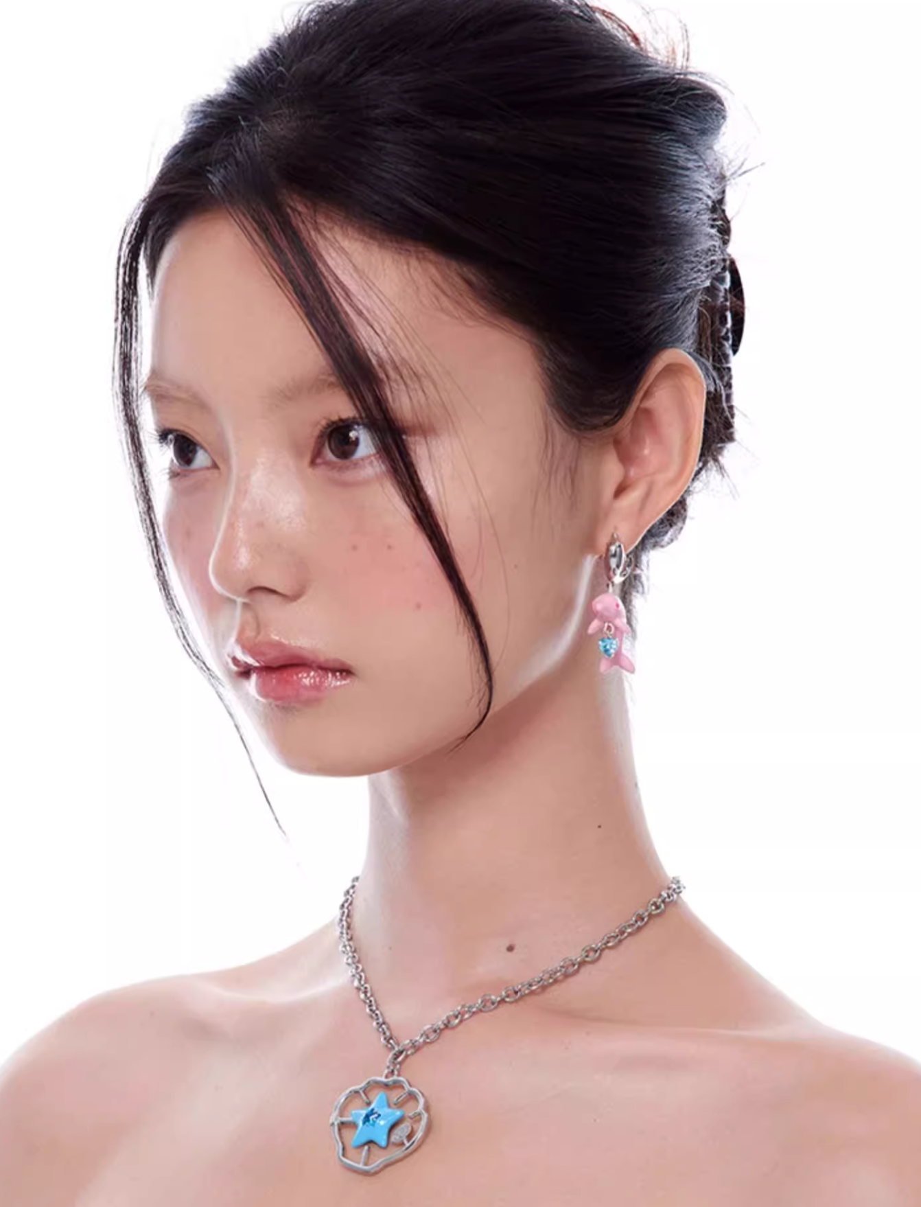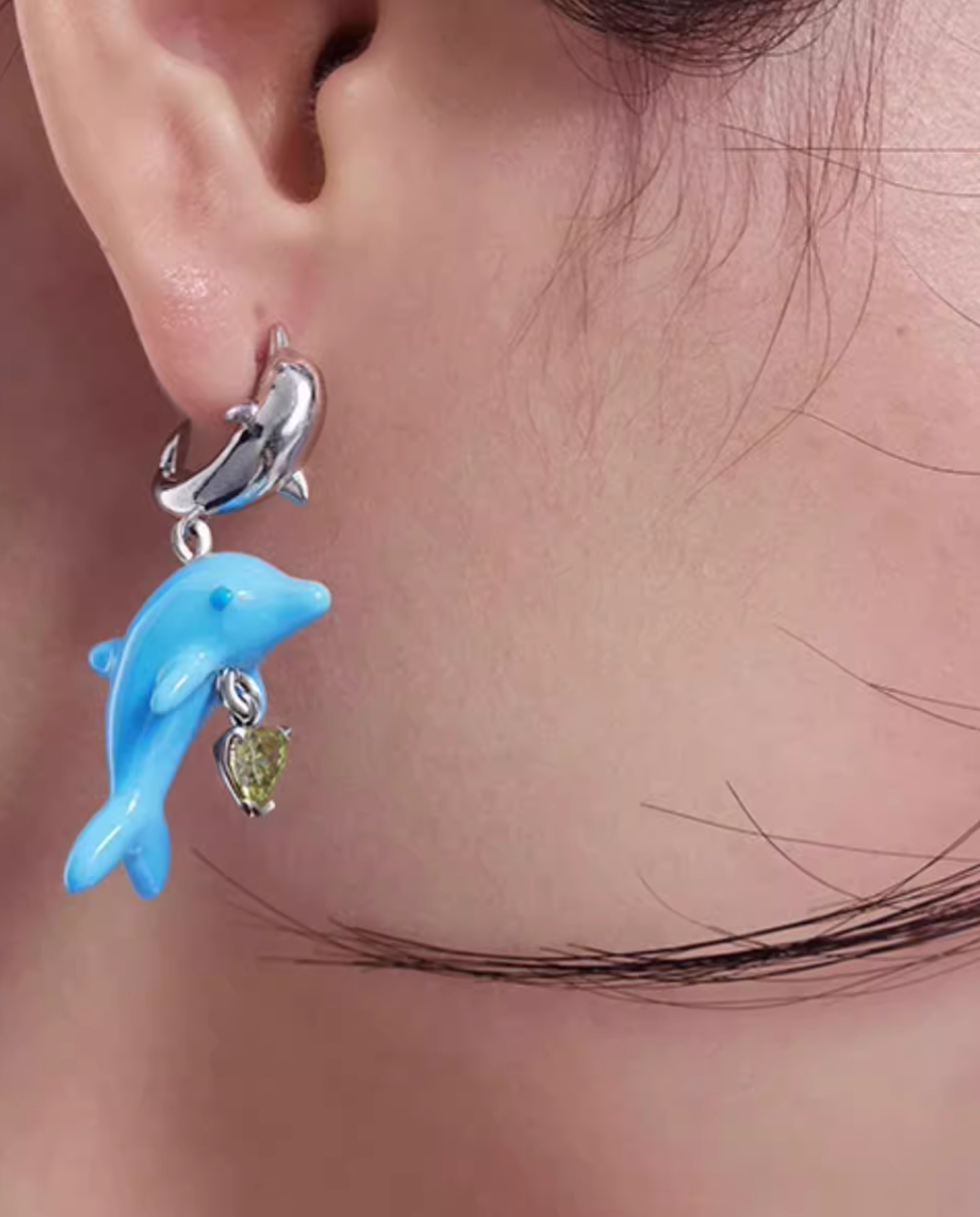 Inspired by the whimsical fantasies of Generation Z teens who grew up in the millennium, the Dolphin Hugs Heart Earrings evokes a playful, daydreaming, nostalgic, and innocent ambiance. This series reimagines the imagery of old toys, immersing the wearer in a fictional space that forms the core narrative of the collection.