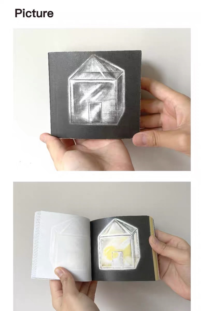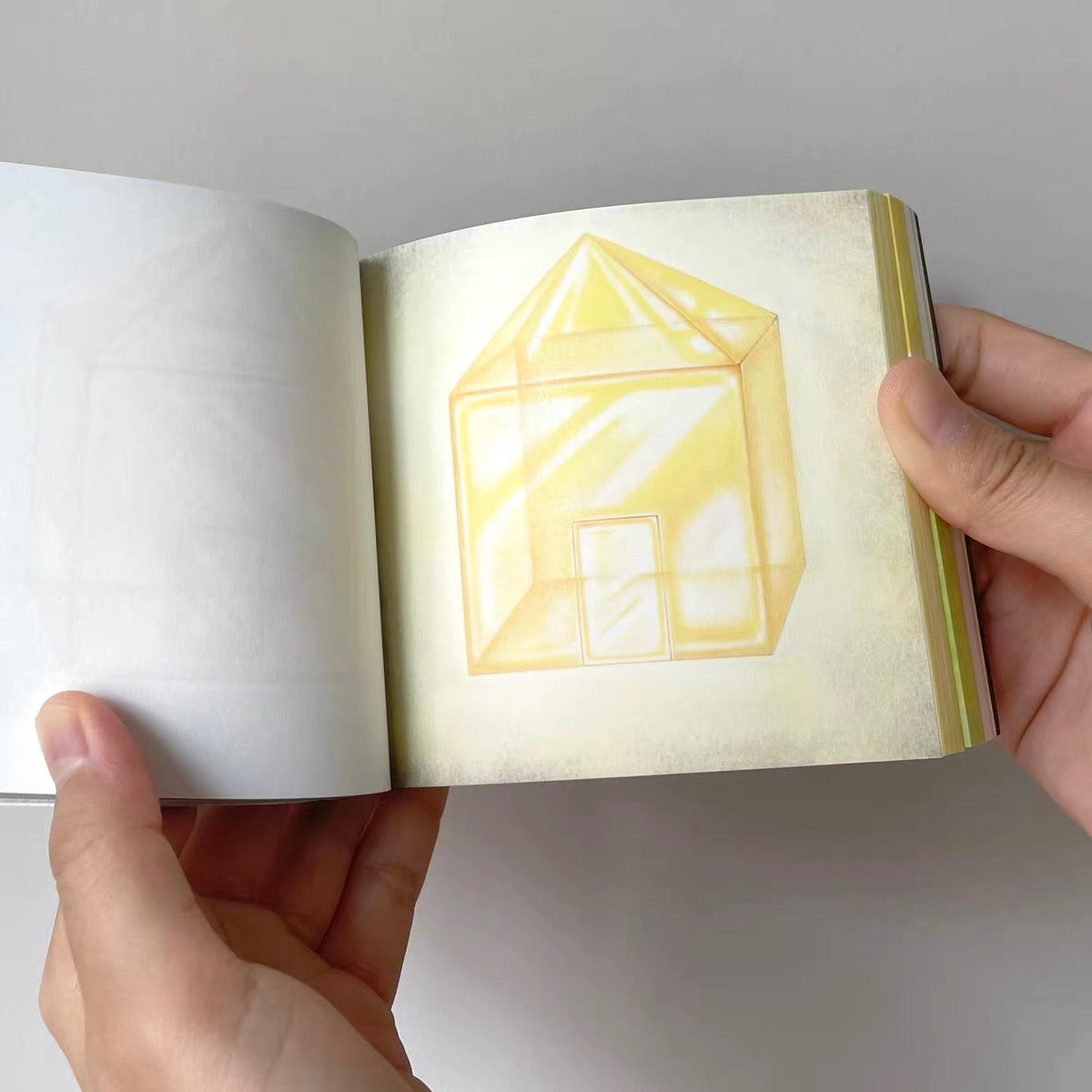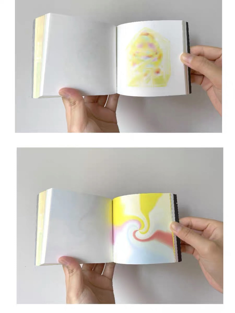The room becomes colorful and starts to sway, eventually transforming into a sphere wrapped in a black cloth, becoming a shooting star in space..."