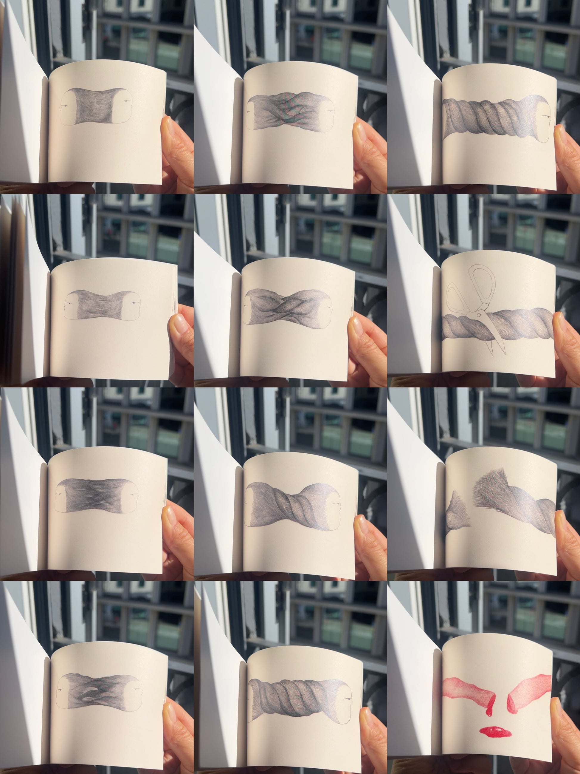 "Mom and Me" is a unique art book that narrates a symbolic journey through the relationship between a mother and child. Through poetic imagery and metaphors, it explores the intimate bond between them, likening it to the experience of an apple split in two halves. As the story unfolds, the apple halves, symbolizing the mother and child, grow hair that intertwines, representing the deepening connection over time. However, this growth eventually leads to knots, and a pair of scissors intervenes, causing tears but ultimately serving as a transformative release.