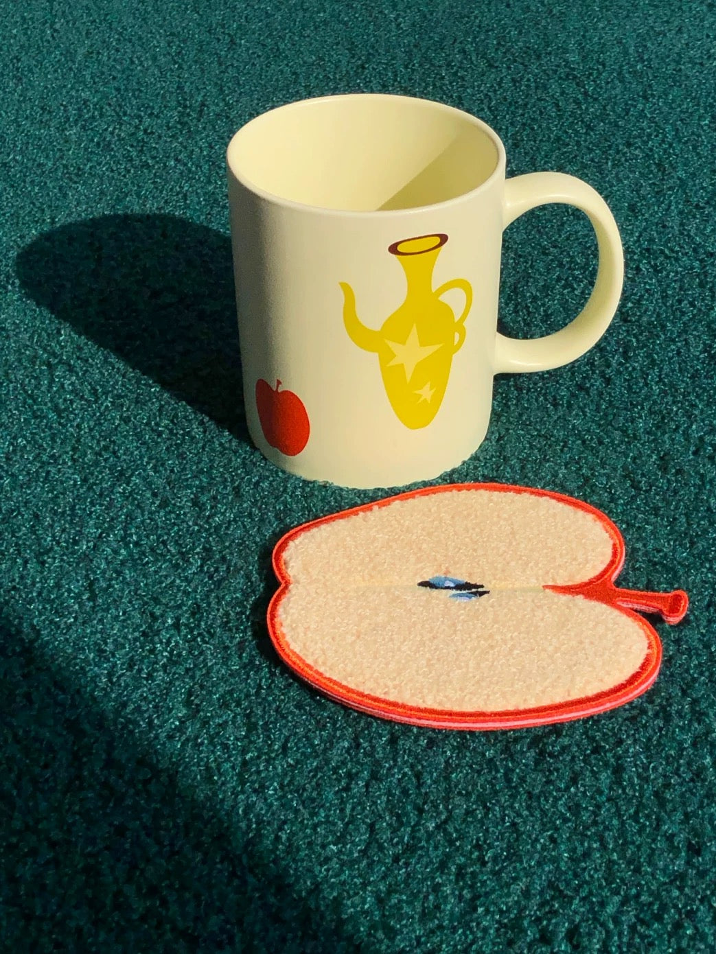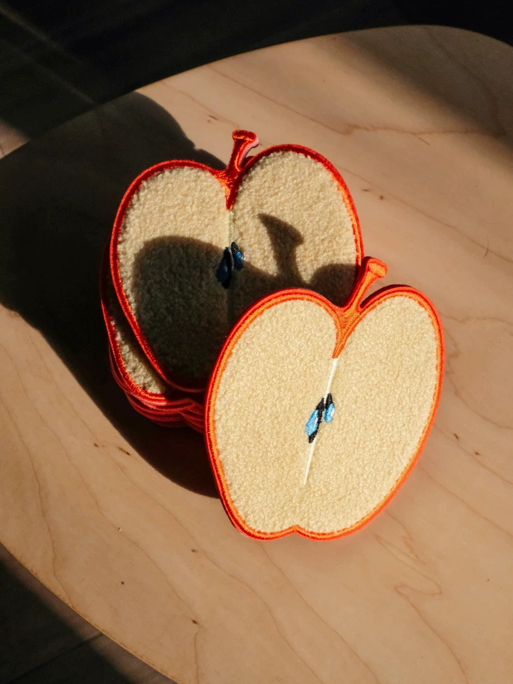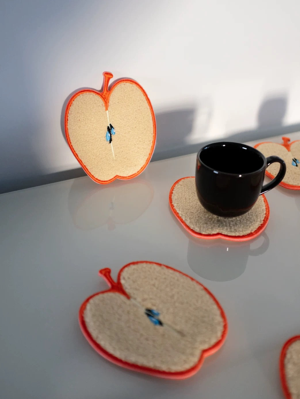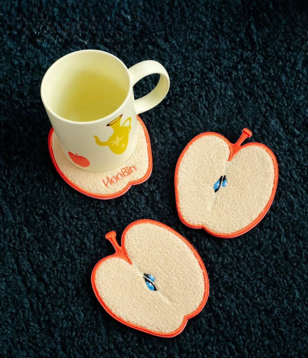 Hoobin - Embroidered Plush Shaped Apple Coaster (Set of 2)