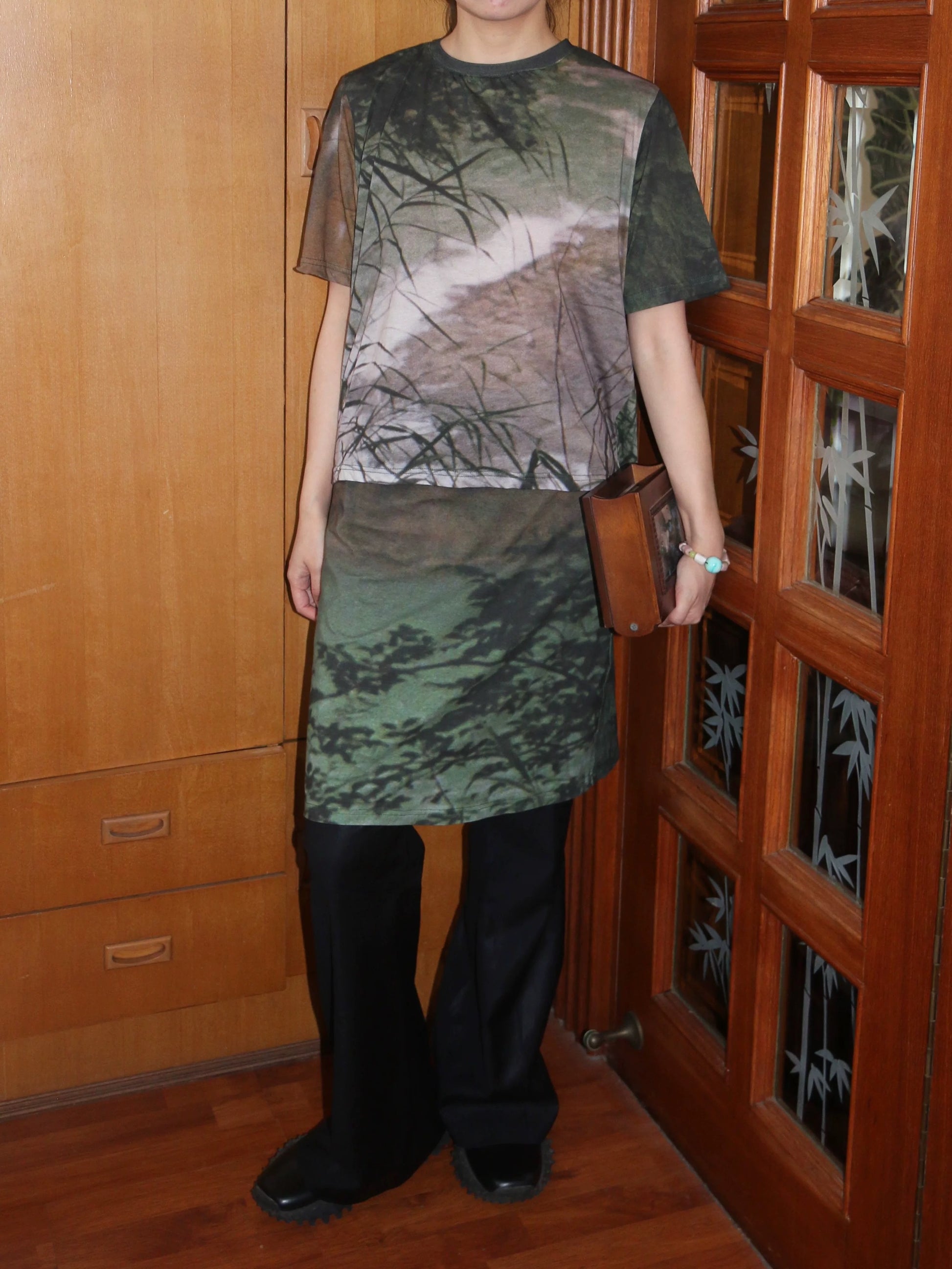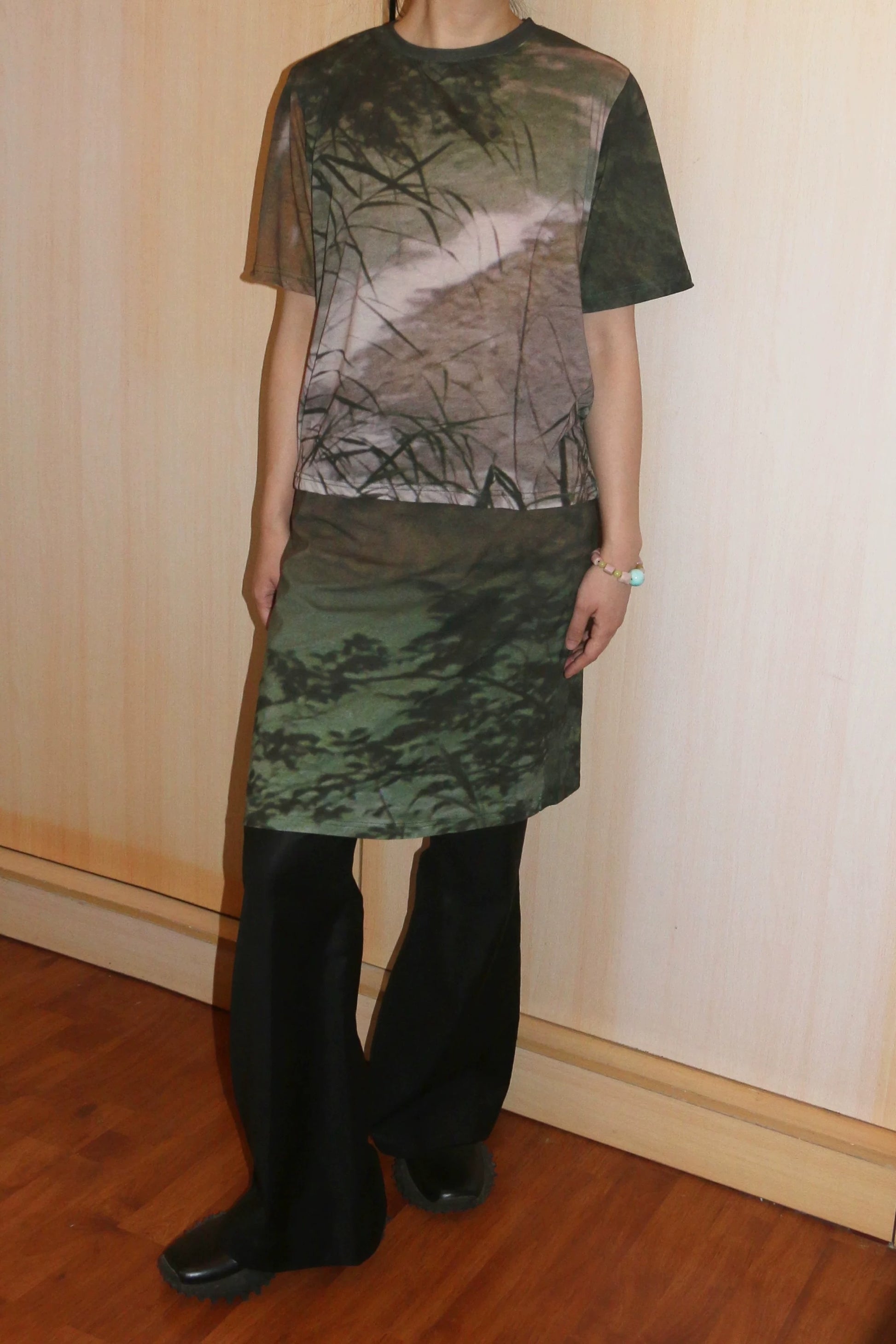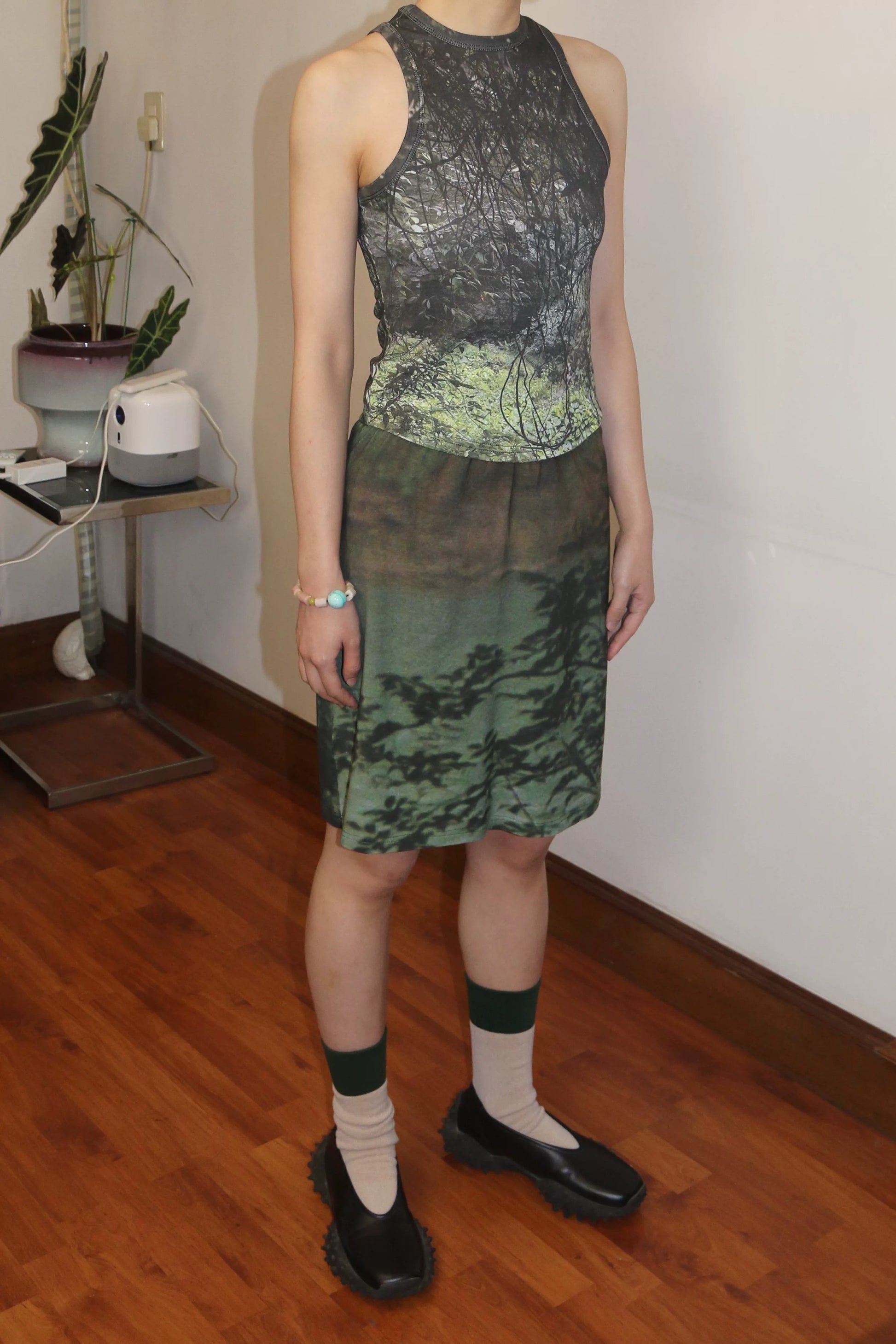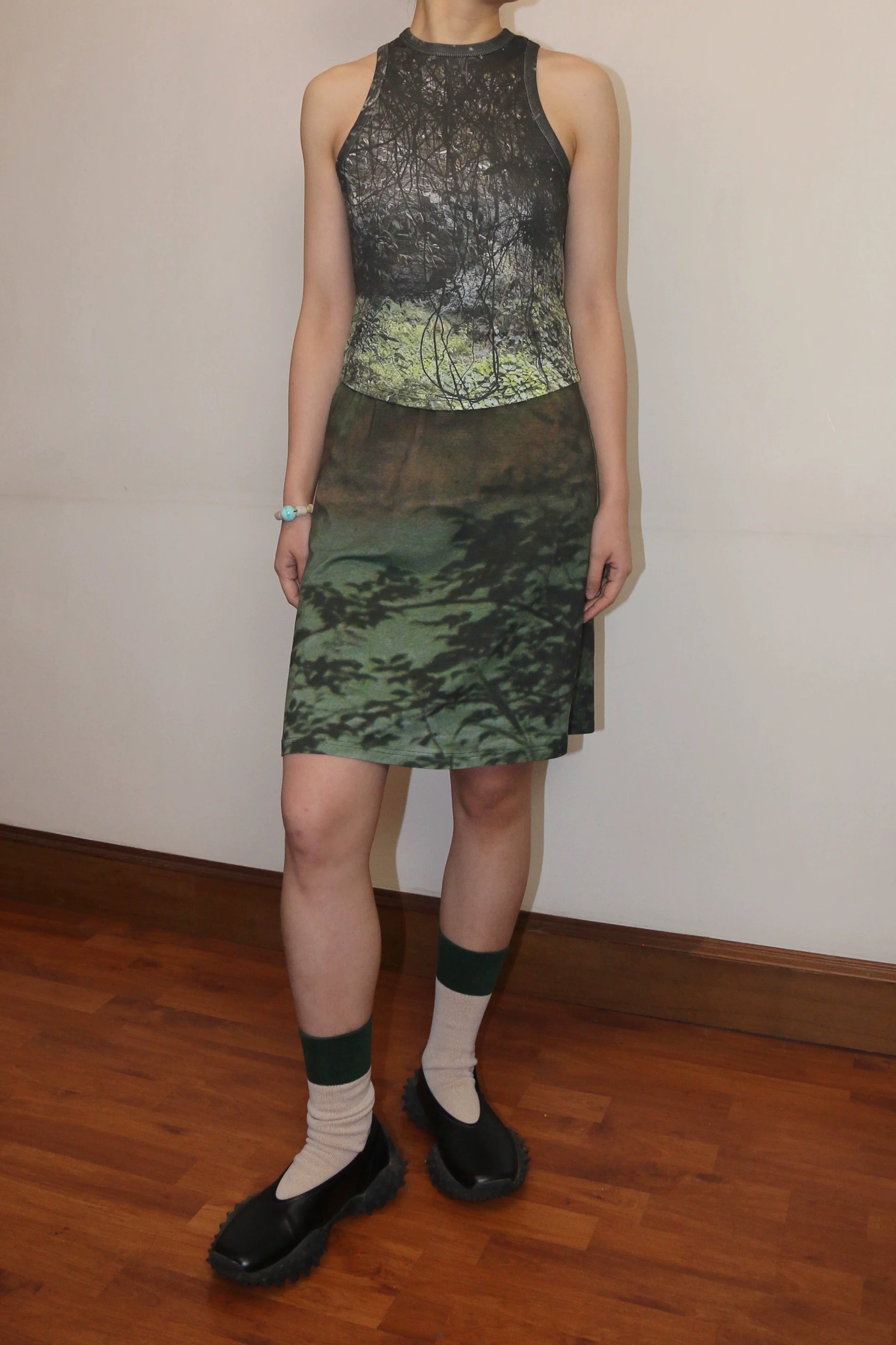 Oddgreen - Oleander Skirt 'Botanical Impression in Pastel Green'