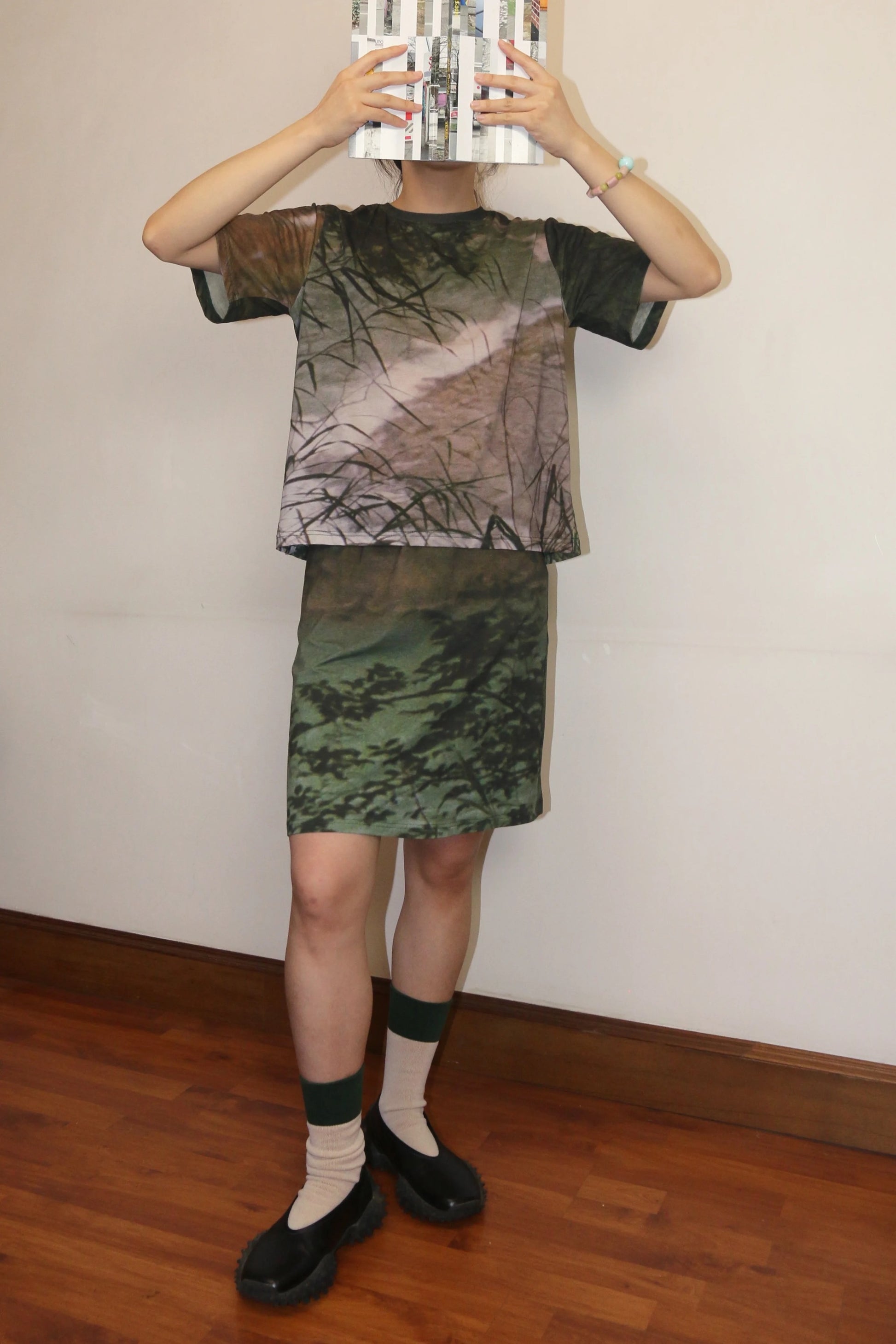 The Oleander print draws inspiration from a subtle yet powerful part of urban Guangzhou — the oleander shrubs lining roadsides, schools, and overpasses. Often overlooked, these neatly trimmed plants bloom quietly, their soft pink flowers belying the plant’s toxic nature. Every part of the oleander is poisonous — a contradiction of fragility and danger. This print reflects that contrast: gentle to the eye, distant in temperament.