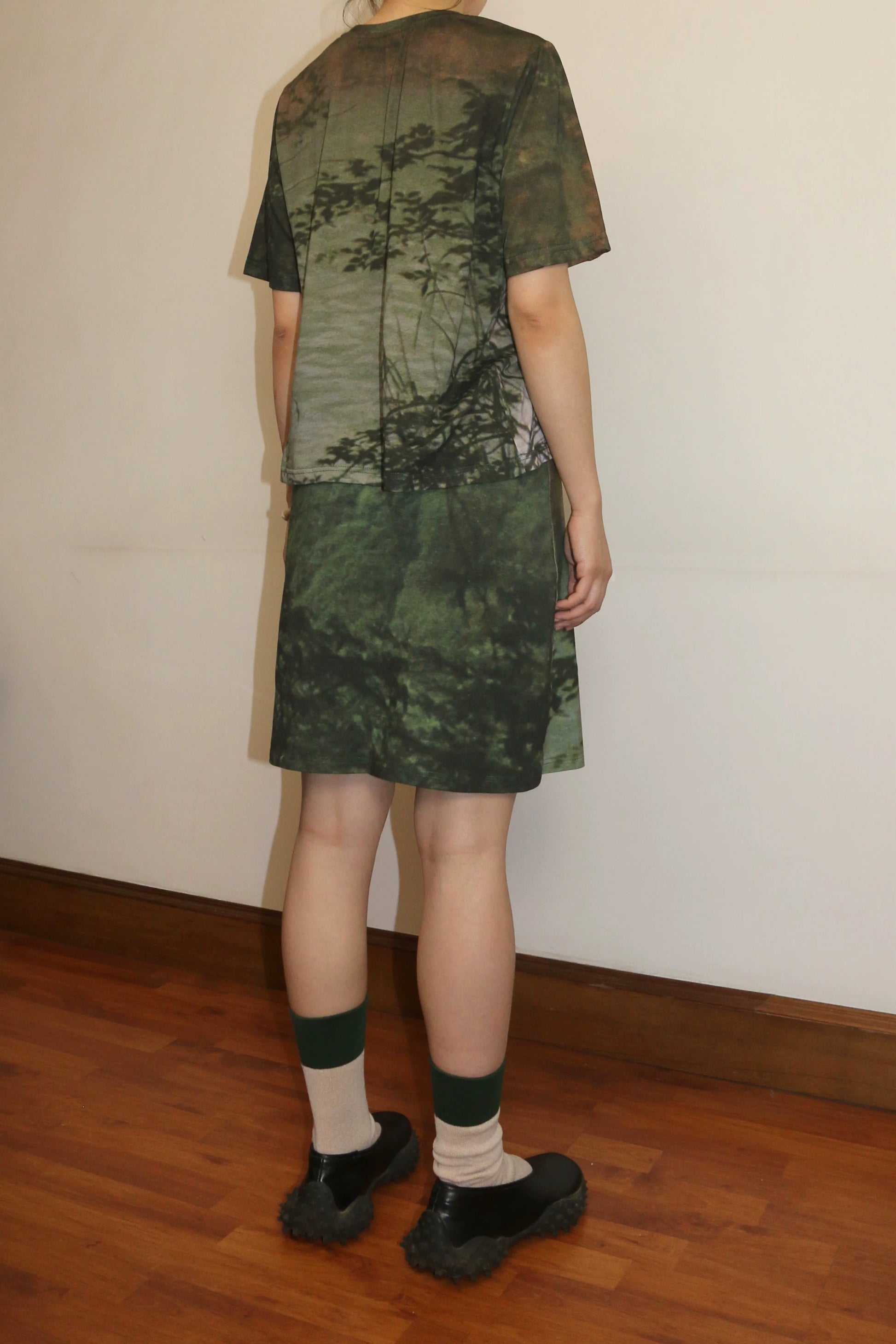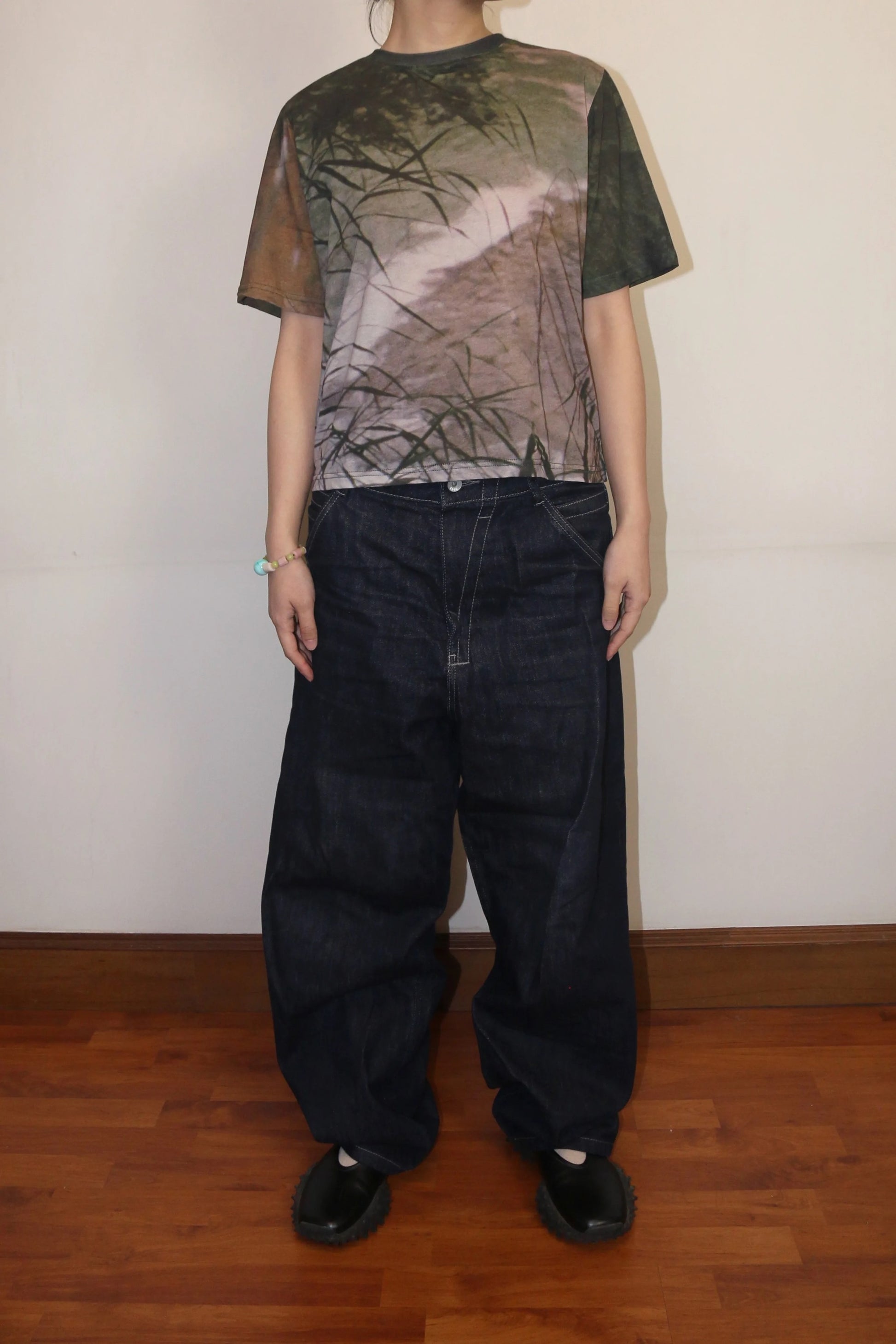 Cut in a relaxed silhouette, the tee stays true to ffolds’ signature shapes: essential, easy to wear, and open to layering. The lightweight cotton blend makes it ideal for everyday wear. The print placement is intentionally neither centered nor pushed aside — instead, it unfolds organically across the body, shifting with movement, inviting the landscape to breathe and fold with you.