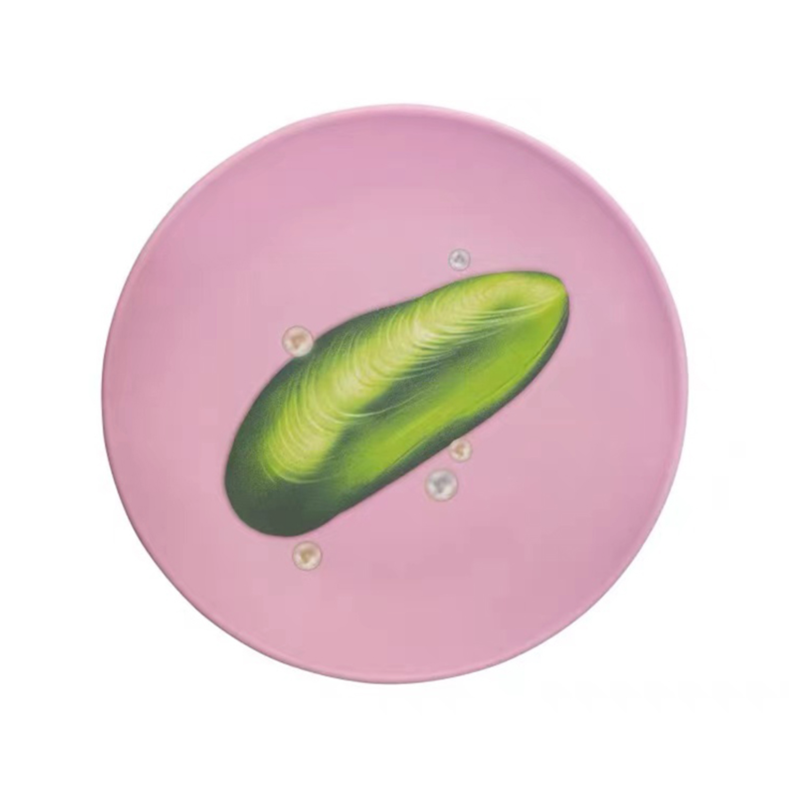 This bamboo plate is naturally antibacterial, eco-friendly, and biodegradable. The design features a green mussel, which represents the "pearl in the mussel." We hope that it can become a lucky charm on your dining table.