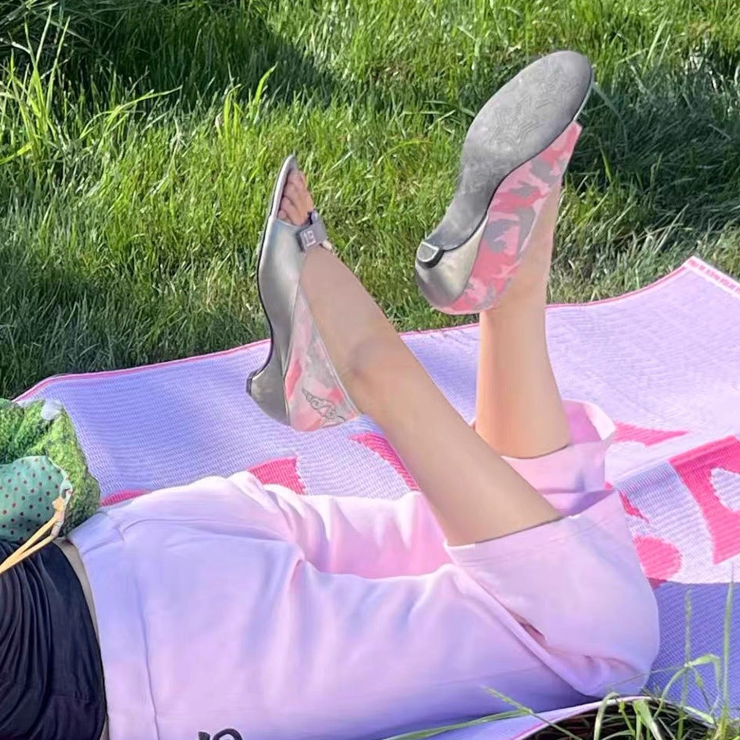 - Upper (Vamp): Pink Camouflage Lambskin & Gunmetal Microfiber
