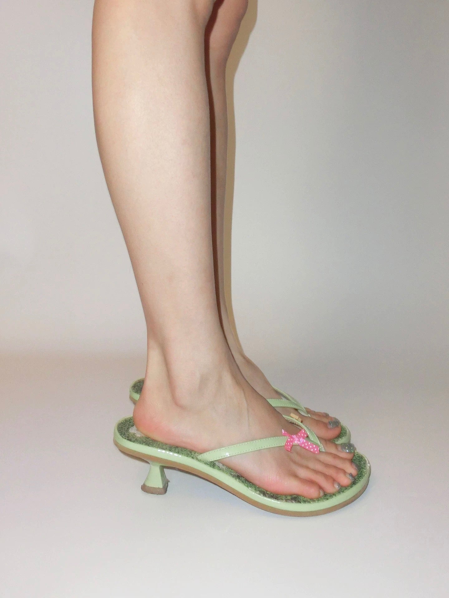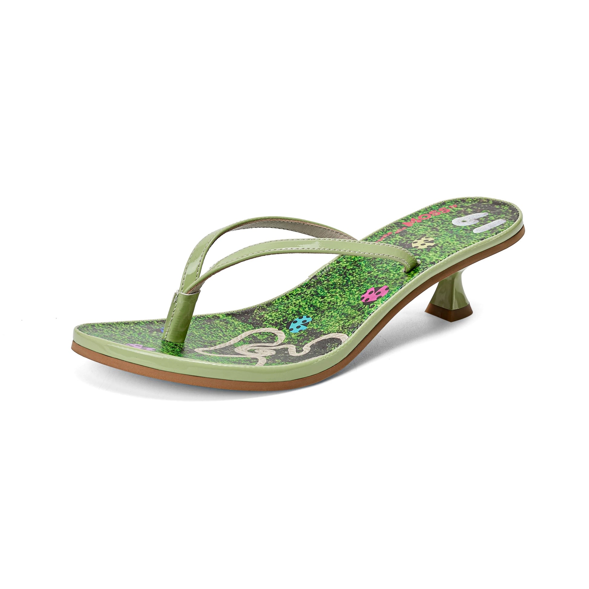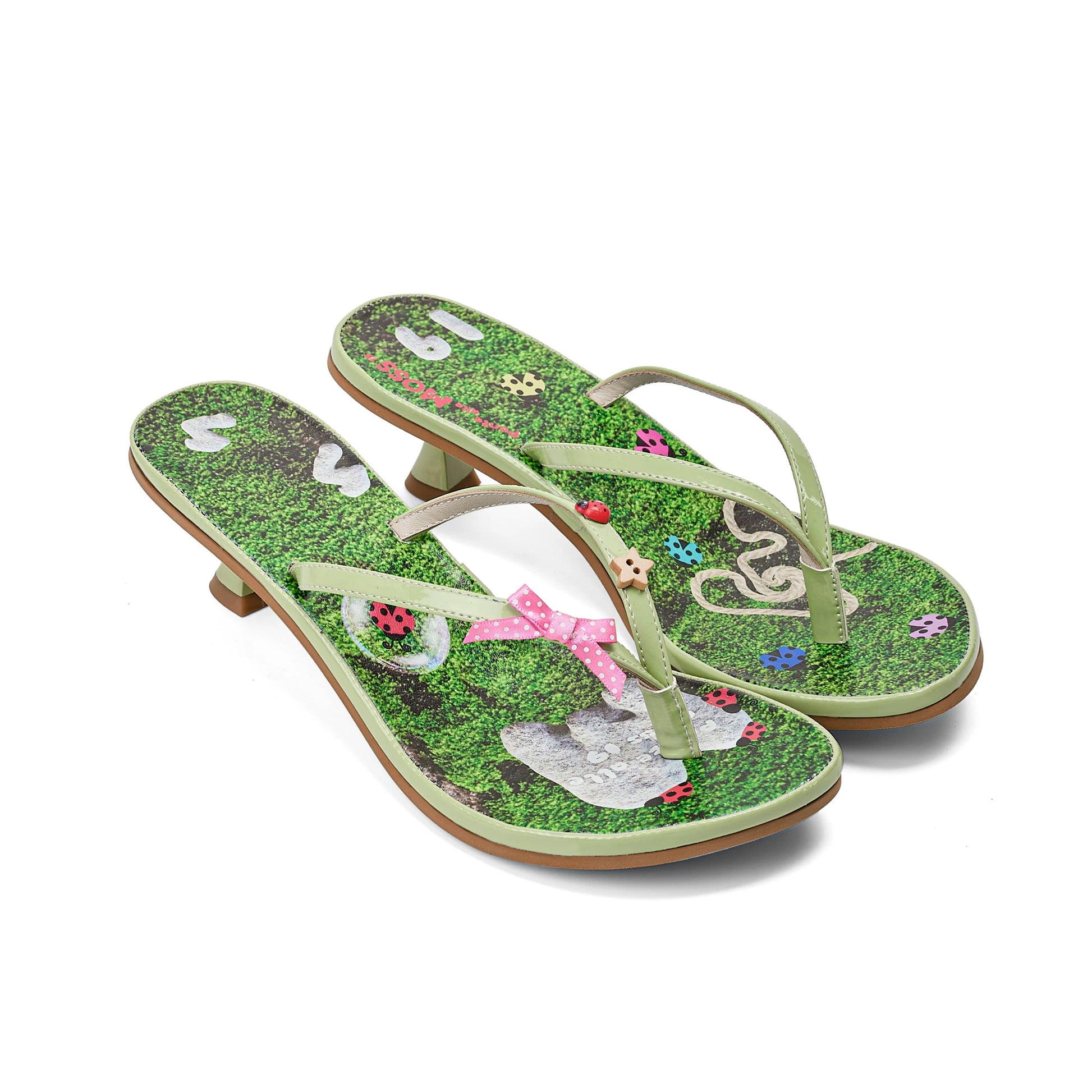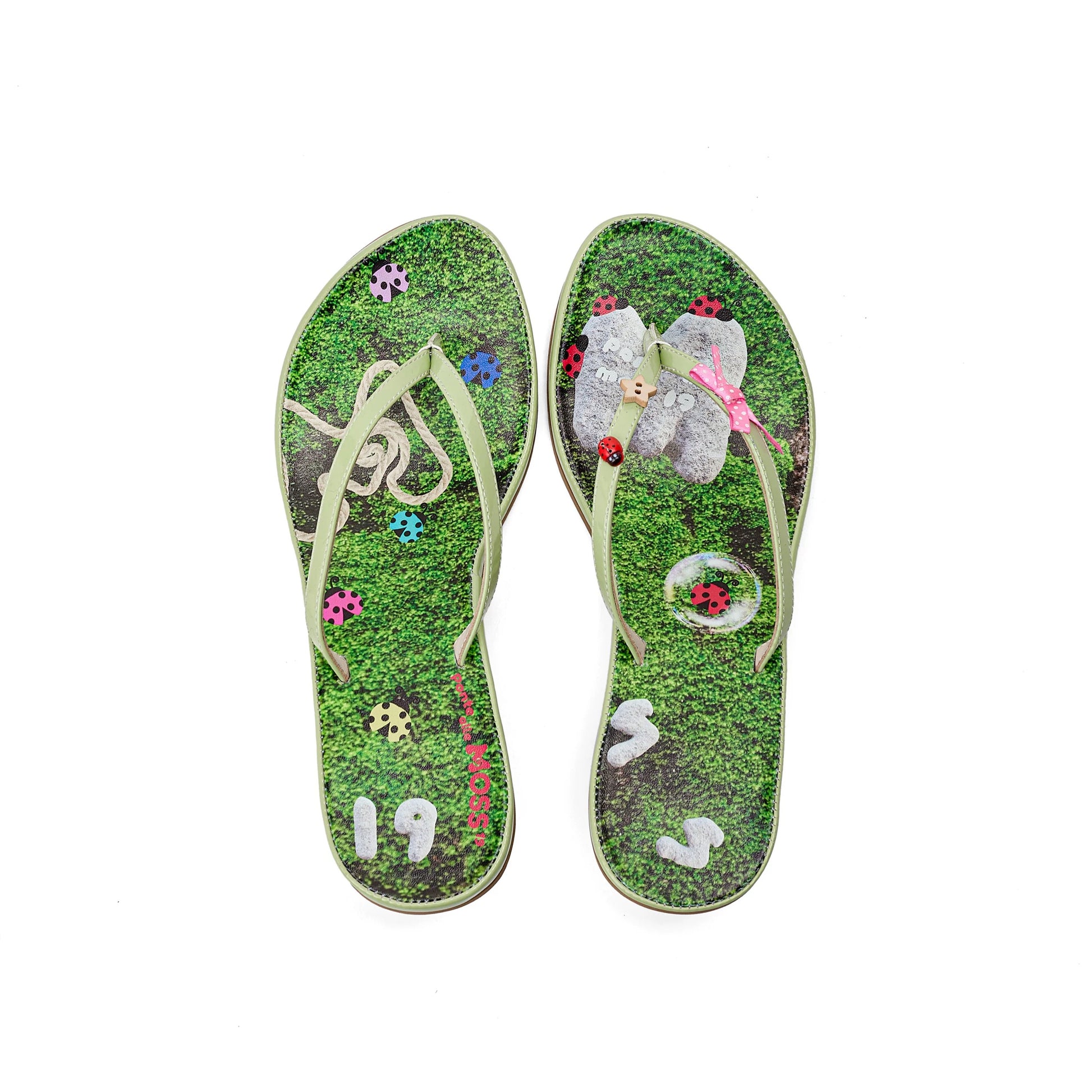 PonteAlleMoss19 – Ladybug Thong Sandals 'Moss Print with Playful Bloom'
